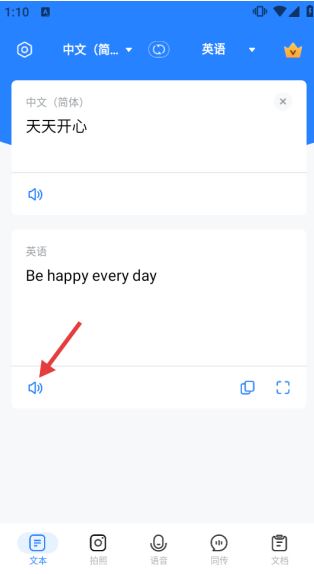 3、翻译完成后,点击语音图标,可收听翻译结果的发音。