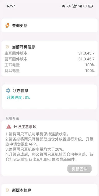 请务必将两只耳机都取出仓外放置进行升级,升级途中请勿退出APP.