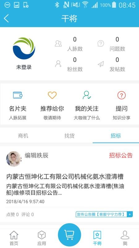 3、干将招标app是一个多维多元化的交流与共享平台,能够更好地发挥供应链节点的价值,创建专业商圈主要突出了行业和商务的属性。