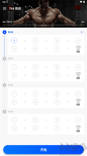 4、每一个部位的锻炼课程自由选择,进入课程界面点击开始即可开始锻炼