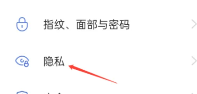 1、打开OPPO手机设置,点击“隐私”。
