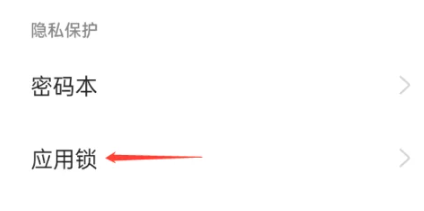 2、在隐私页面中,点击“应用锁”。