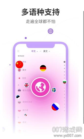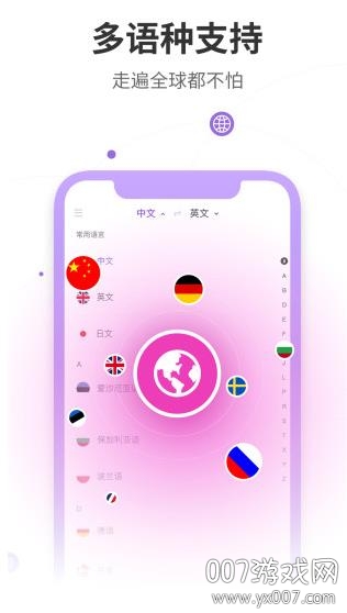 6、语种丰富:【语音翻译】支持:中文、英语、日语、俄语、德语、法语、韩语、荷兰语、葡萄牙语、西班牙语、意大利语;【文本翻译】支持:中文、英语、日语、越南语、意大利语、匈牙利语、希腊语、西班牙语、泰语、斯洛文尼亚语、瑞典语、葡萄牙语、罗马尼亚语、捷克语、韩语、芬兰语、法语、俄语、丹麦语、德语、波兰语、保加利亚语;