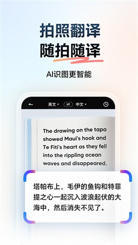 2、拍照就能翻译,无需输入也能查词词典,支持英日韩等上百种语言的转译。