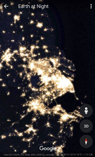 我们就进入了谷歌地球的夜景模式了;