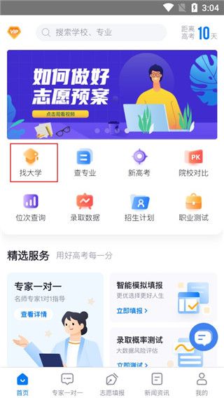 2、在软件主页面选择找大学;