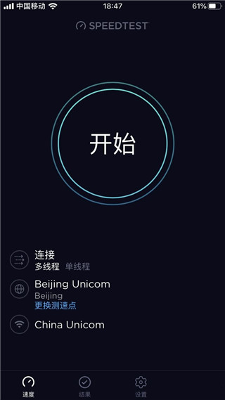 1、启动Speedtest5gApp。Speedtest会自动选择一个离你最近的服务器;