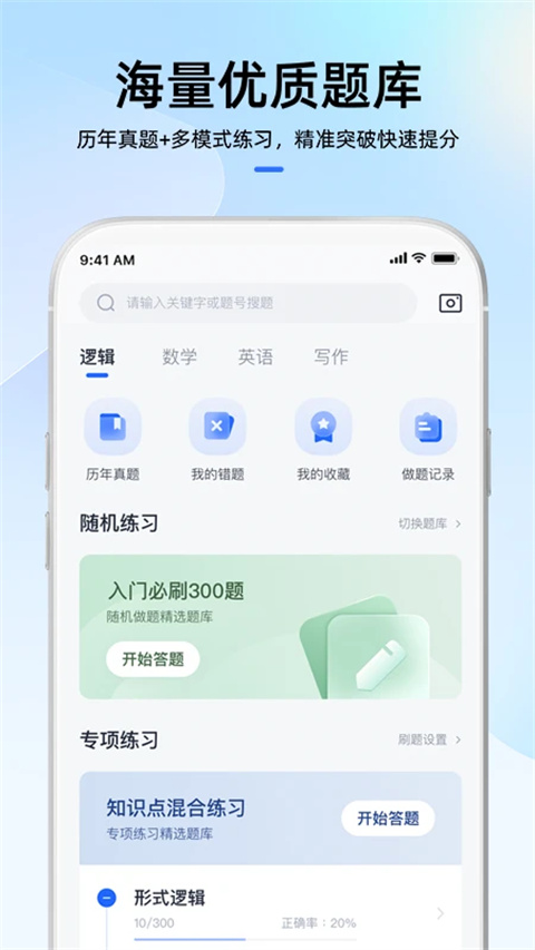 智能化数据统计,通过考点正确率掌握备考薄弱环节;关键词搜索历年真题,高效学习
