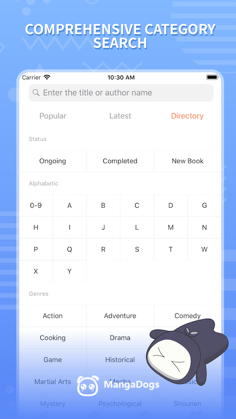 漫画狗英文名为Manga Dogs,是专为漫迷打造的免费追漫神器,内置超10万本连载、完结漫画,分男频与女频版块方便找到心仪题材,漫画图片高清呈现且自适应手机屏幕大小,可开启夜间、护眼阅读模式享受视觉盛宴,紧跟国内外漫画站点更新,把握时下热漫潮流,每天推荐一本热门佳作助你时刻掌握漫画界最新动态 。