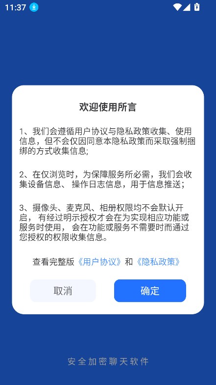 1、在这里可以畅所欲言,所有的消息记录都是进过加密的,保证大家会话过程中的安全。