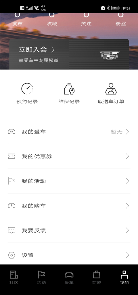 1、在本站下载安装并打开凯迪拉克APP,进入软件首页,找到我的点击进入页面。
