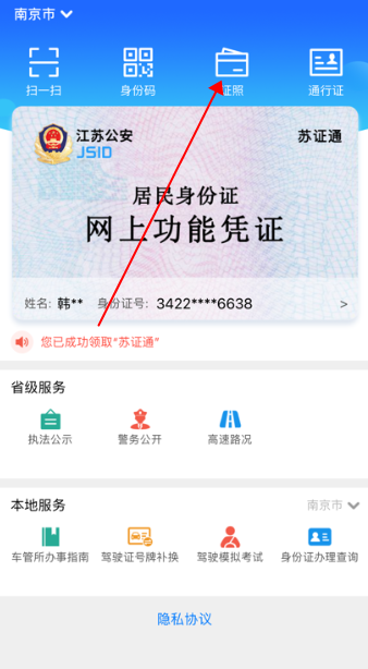 上传成功后,系统会进行验证,验证通过后,该证件即可在苏证通APP中显示和使用