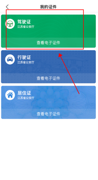 进入证照列表,找到驾驶证,点击下方的查看电子证件