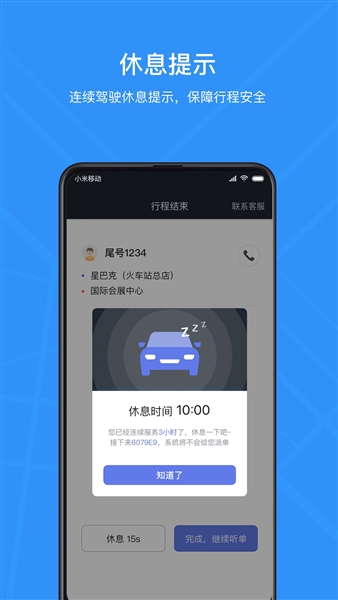 2、全程记录行程轨迹,提供紧急联系人功能,只为给乘客们带来安全行程保障。