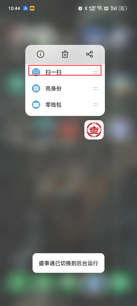 1、下载安装进入到盛事通app页面,点击选择左下角市民码项目。