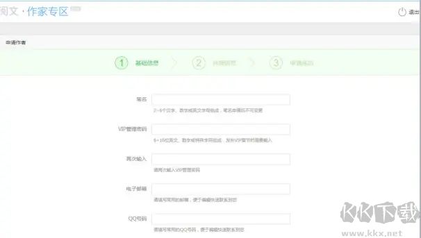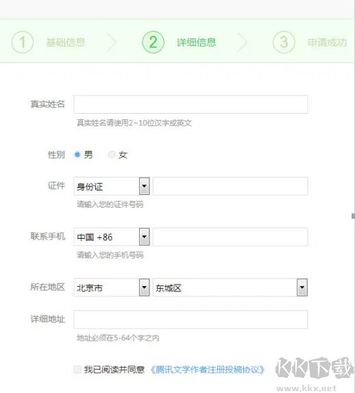 3、在“申请作者”模块中,填写“基础信息”后点击“下一步”,然后填写“详细信息”,填写完成之后,点击“提交申请”即可。
