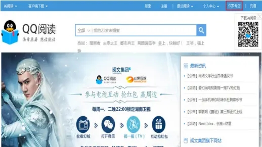 1、进入QQ阅读官网,点击右上角的“作家专区”;