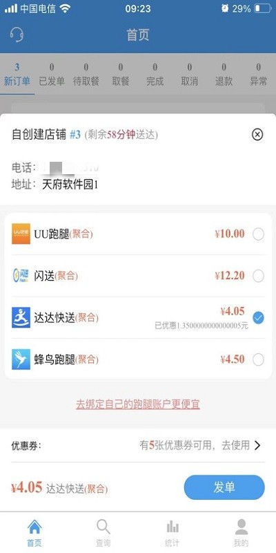 可在线自行选择发单类型,便于能快速匹配合适的配送骑手;